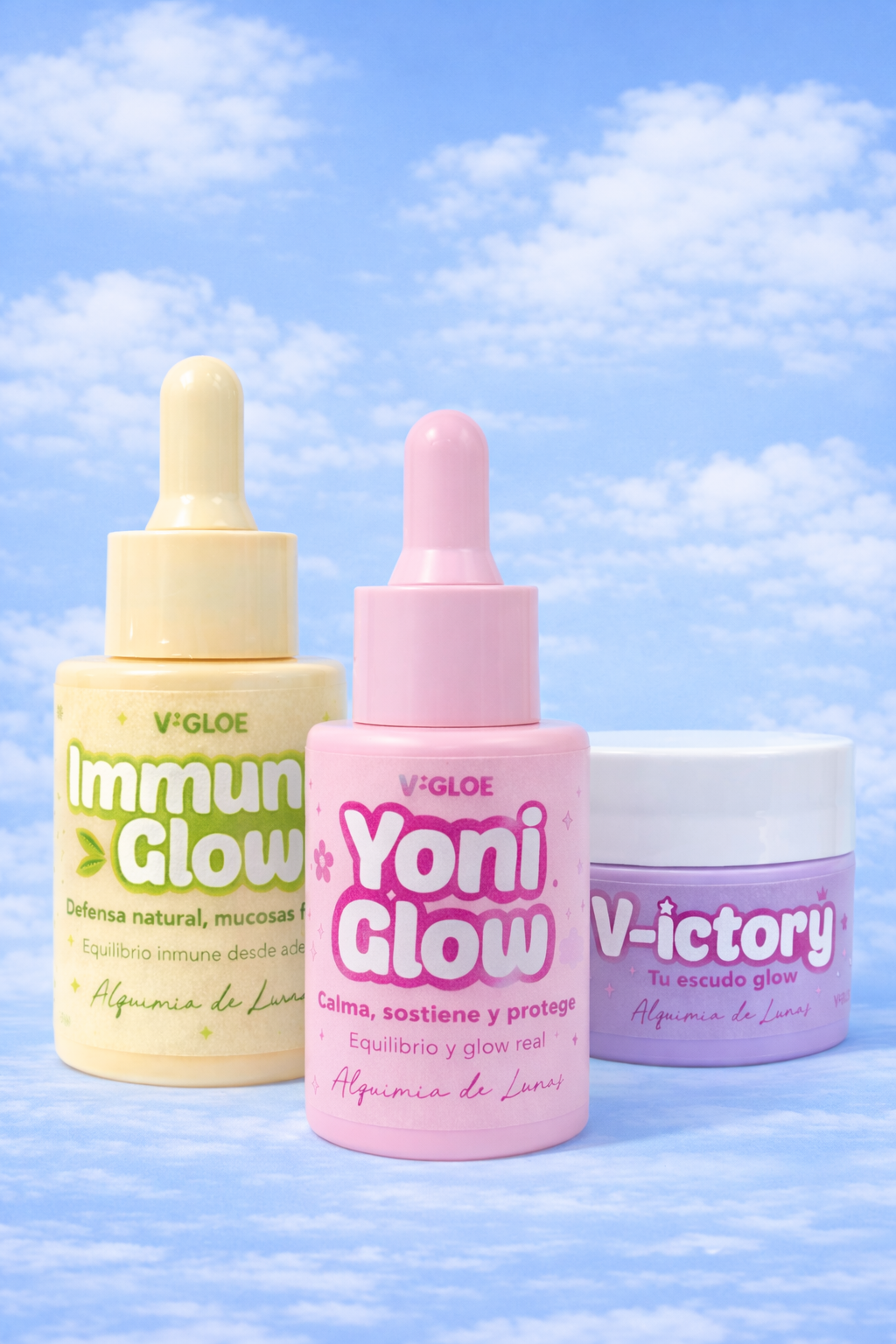 Victory actúa en momentos de brote, Yoni Glow sostiene y protege en el día a día, y Immuny Glow apoya el terreno interno para reducir la recurrencia.